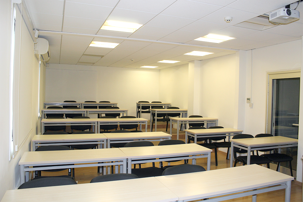 The seminar/meeting/lecture/ room is fully equipped with Air-conditioning, Projector / Screen, Whiteboard, Desktop PC with internet LAN connection, Tables & Chairs. Free wireless Internet access is available. The room has a Hotel Reception Desk setup for Front Office training purposes and general teaching/training purposes.
